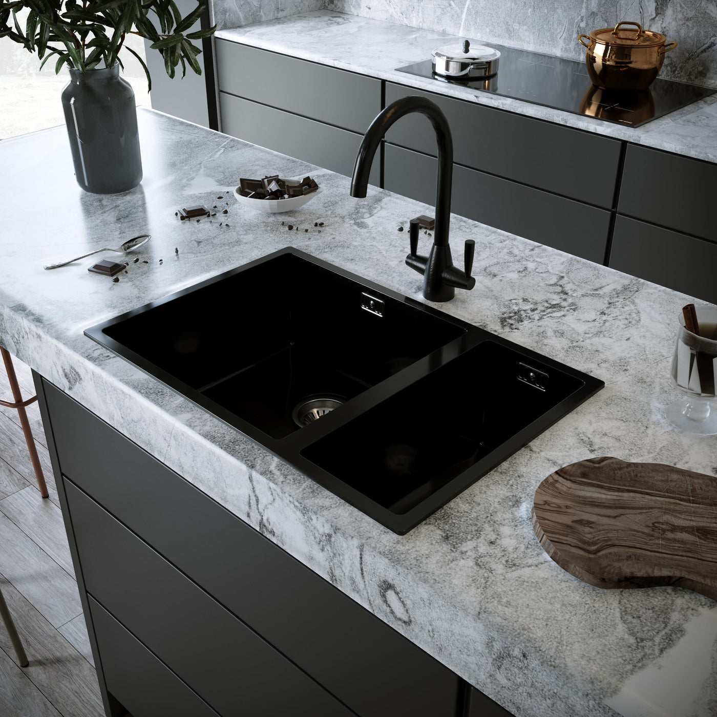 This black boiling water tap looks so sleek and modern in my kitchen. It heats up water quickly and the black finish is easy to clean.