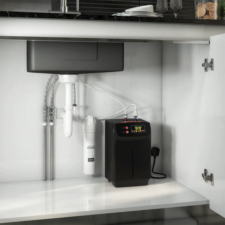 This black boiling water tap looks so sleek and modern in my kitchen. It heats up water quickly and the black finish is easy to clean.