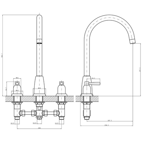 Verossi |Cuthbert| Classic 3TH Kitchen Mixer Tap| Brushed Brass