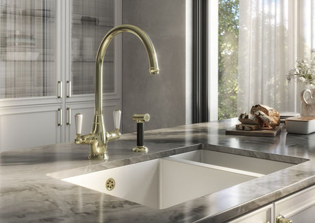 Verossi | Oswald| Traditional Dual Lever Kitchen tap | Brushed Brass