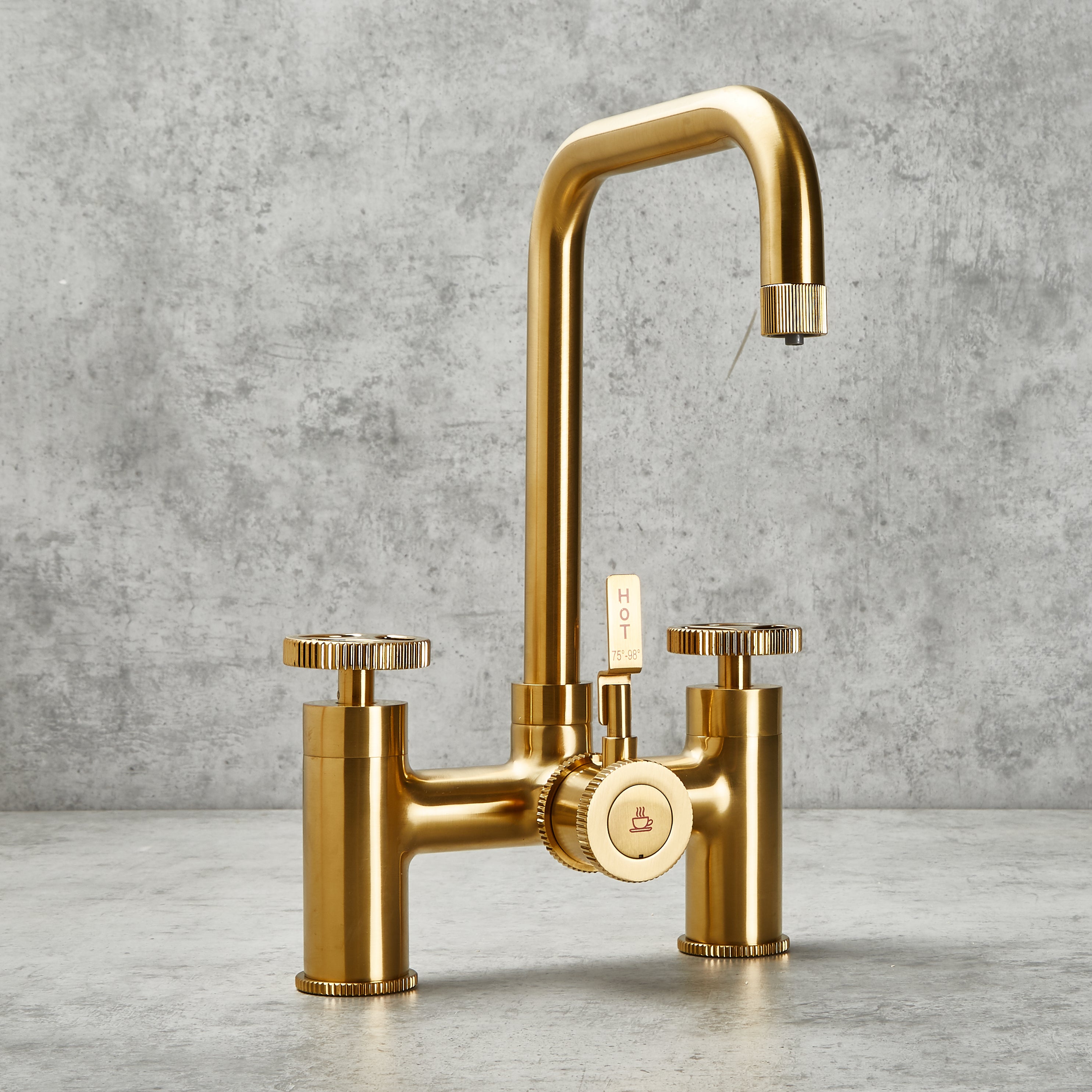 Verossi | Vorisse | Industrial Bridge Style 3 in 1 Instant Boiling Tap | Brushed Gold Finish