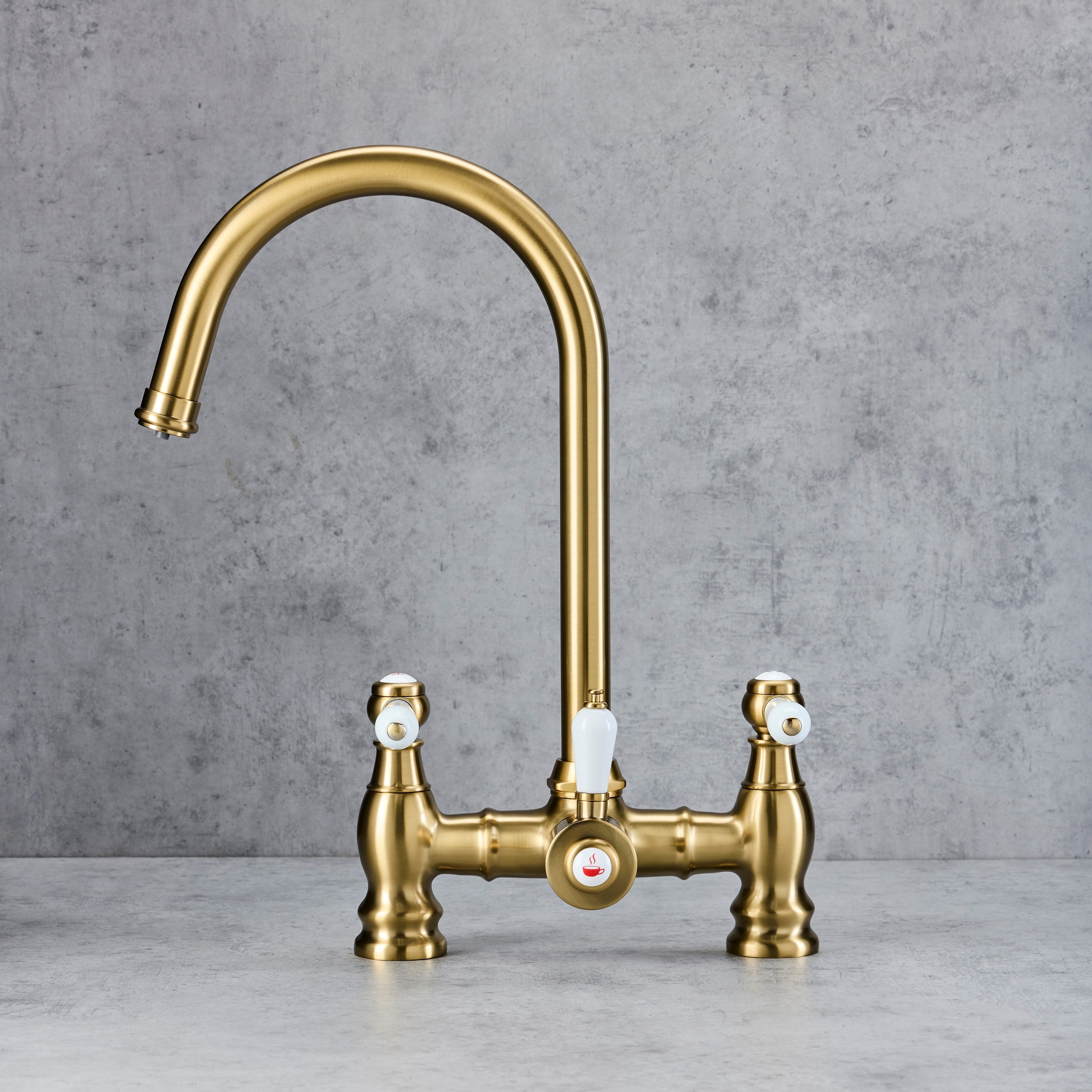 Verossi  | Venetian | Traditional Bridge Style 3 in 1 Instant Boiling Tap | White Ceramic Levers | Brushed Brass Finish